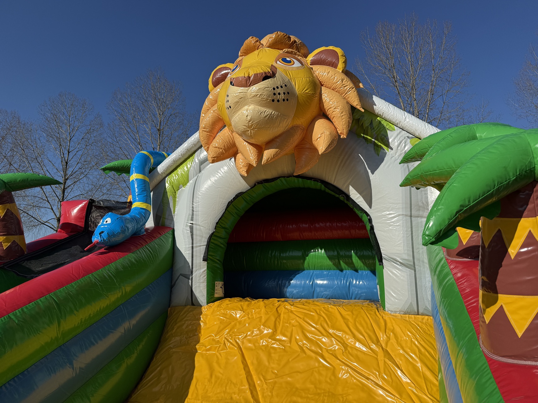 This jungle slide is perfect for rental companies looking to expand their offerings with a popular summer attraction. Its combination of height, theme, and water feature makes it highly appealing for private renters.