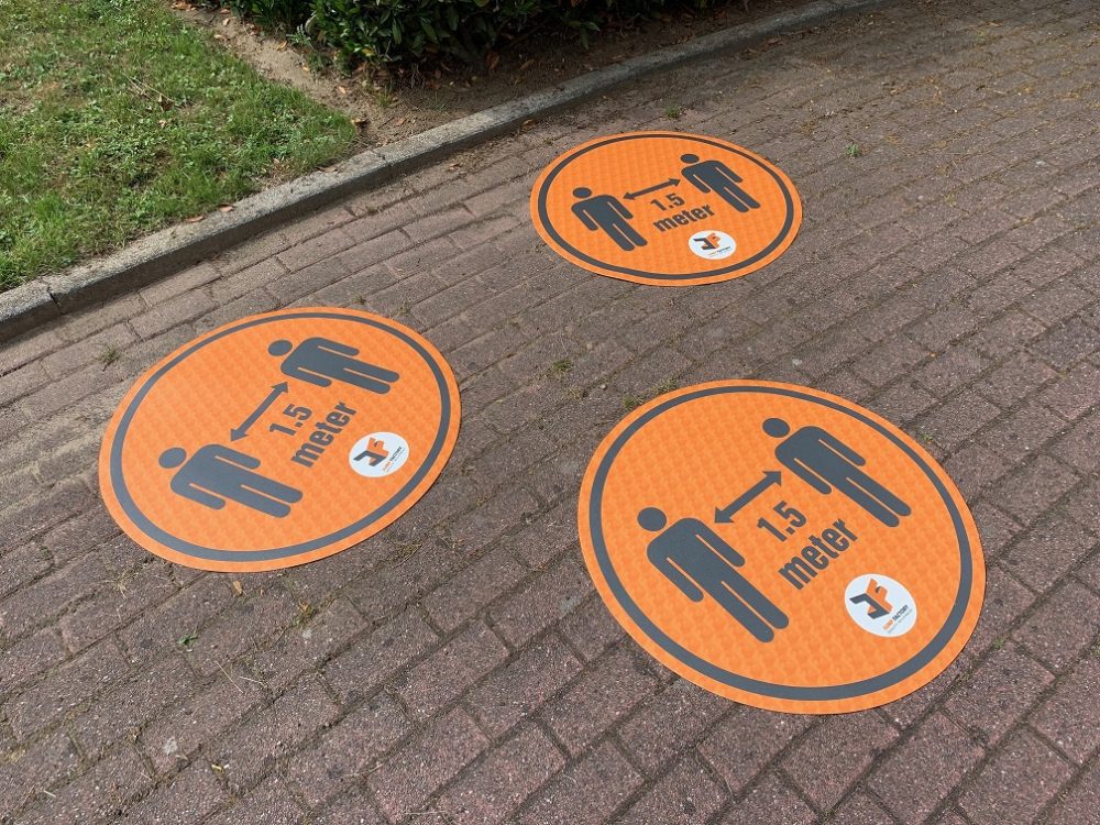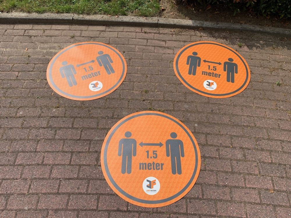 This Floor Marker Vinyl has a diameter of approx. 80 cm and is easy to place on any surface and helps people remember the mandatory distance. This circle is useful to place for example for a bouncy castle or other attraction. this variant is ideal when an attraction is on a hard surface.