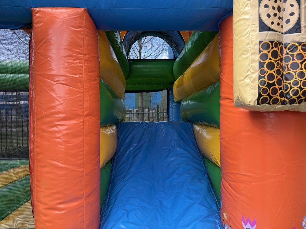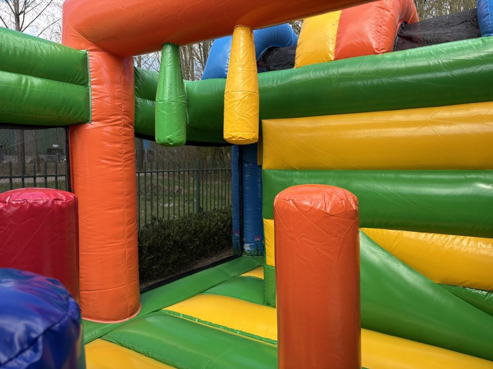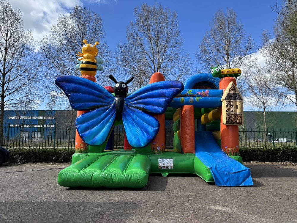 The Multiplay Butterfly is the perfect bouncy castle for hours of fun outdoors! This colorful and cheerful inflatable, shaped like a butterfly, gives children a safe and adventurous play experience. Thanks to the covered design, the bouncy castle is protected from sun and rain, making it a great choice for any season.